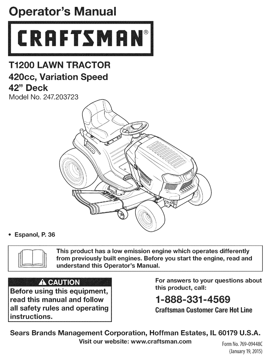 Craftsman T1200 247 203723 Operator S Manual Pdf Download Manualslib